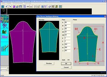 ②可記憶打版數(shù)據和步驟,按輸入的各規(guī)格尺寸自動生成新紙樣,并可自動放碼。