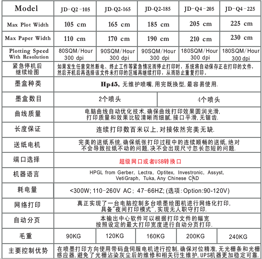 錦德QQ時尚網(wǎng)口噴墨繪圖儀6大特色說明: