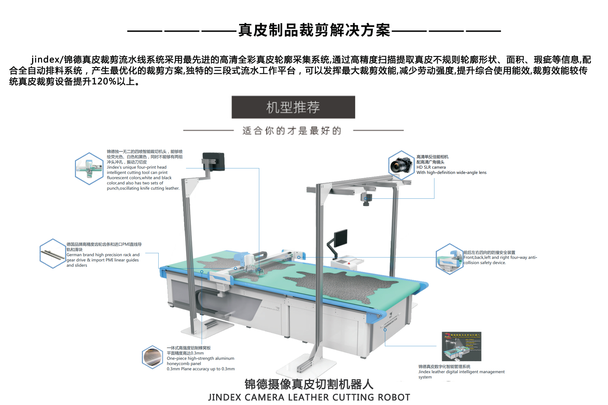 錦德真皮裁剪流水線系統(tǒng)采用先進的高清全彩真皮輪廓采集系統(tǒng),通過高精度掃描...
