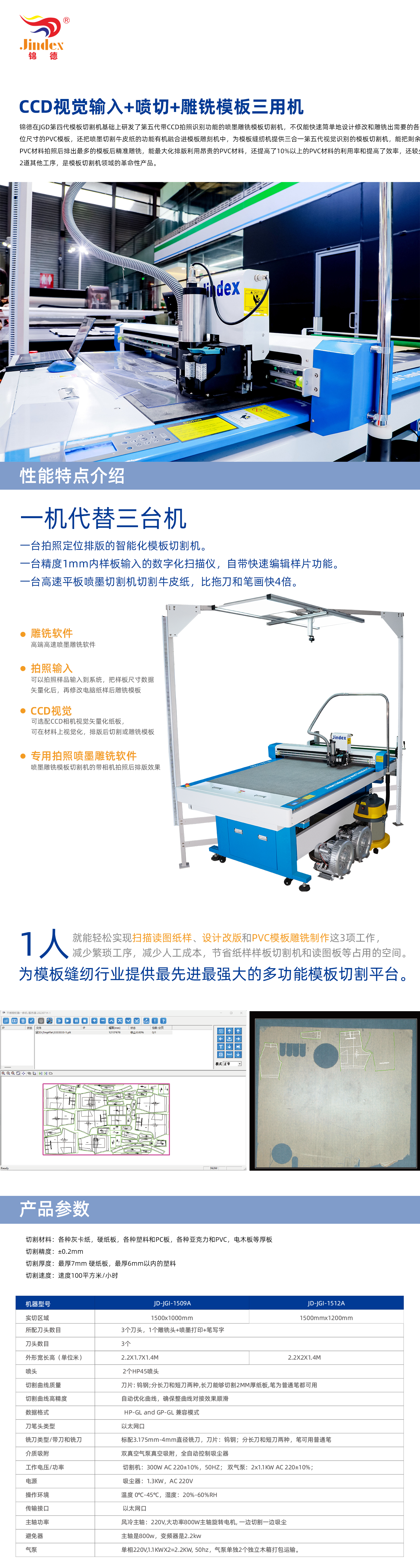 錦德CCD視覺輸入+噴切+雕銑模板三用機